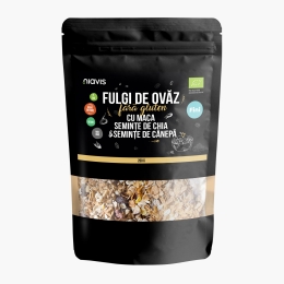 Fulgi de ovaz fini eco, fara gluten, cu maca, seminte de chia si seminte de canepa 200g